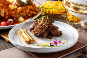 江浙菜系中的經典冷盤,主廚融合傳統江浙蔥㸆手法,以蔥段、醬油慢火㸆煨,讓鬼頭刀魚肉吸收醬汁精華,香而不膩,醬汁包裹於魚肉上,口口醇厚鮮香,冷食更顯風味迷人。