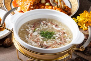 杭州名菜「宋嫂魚羹」典故能追溯至南宋時期,主廚以肉質細緻的鬼頭刀取代鱖魚,以火腿高湯煨製而成,鮮美滋味不在話下。