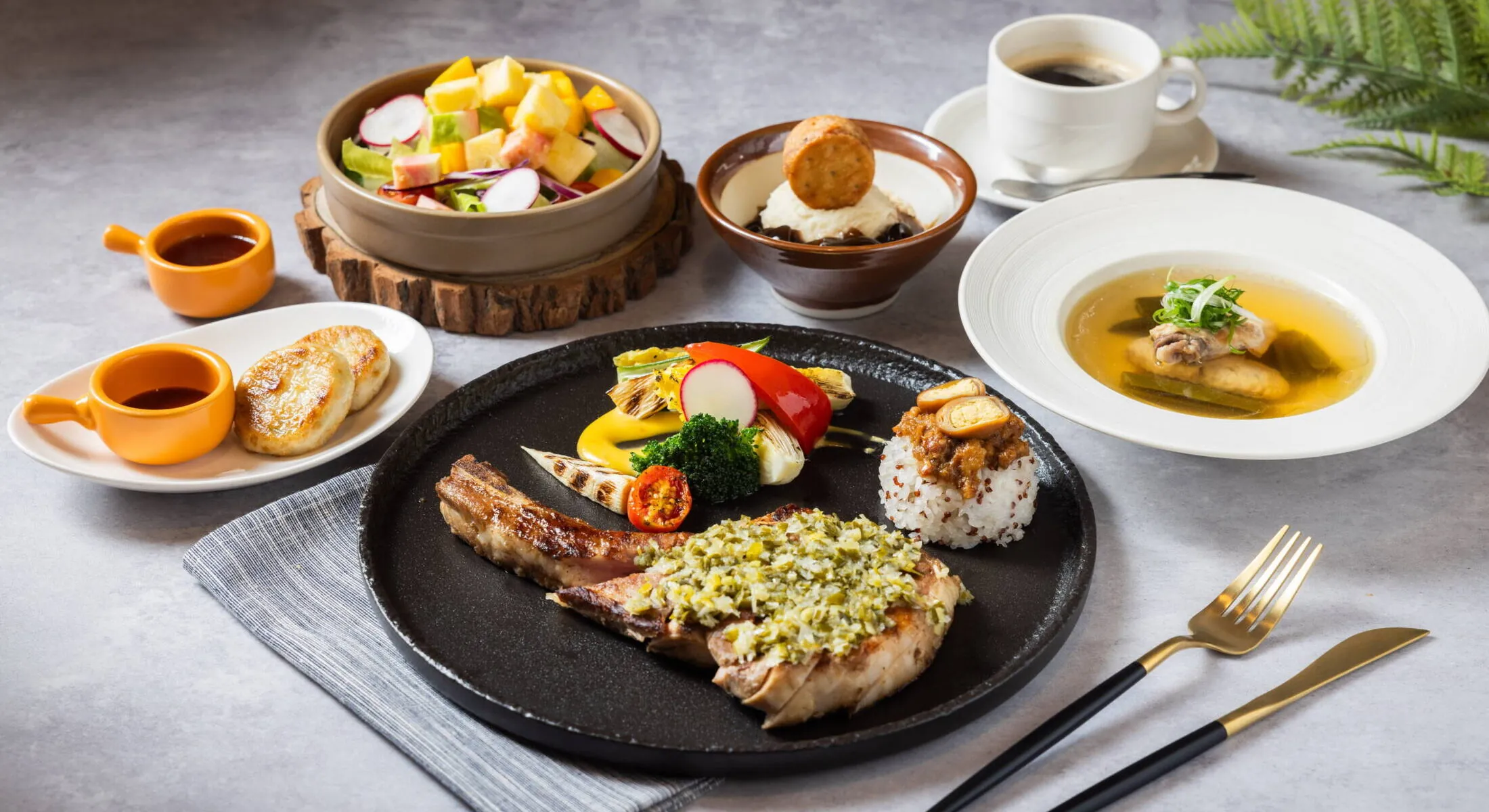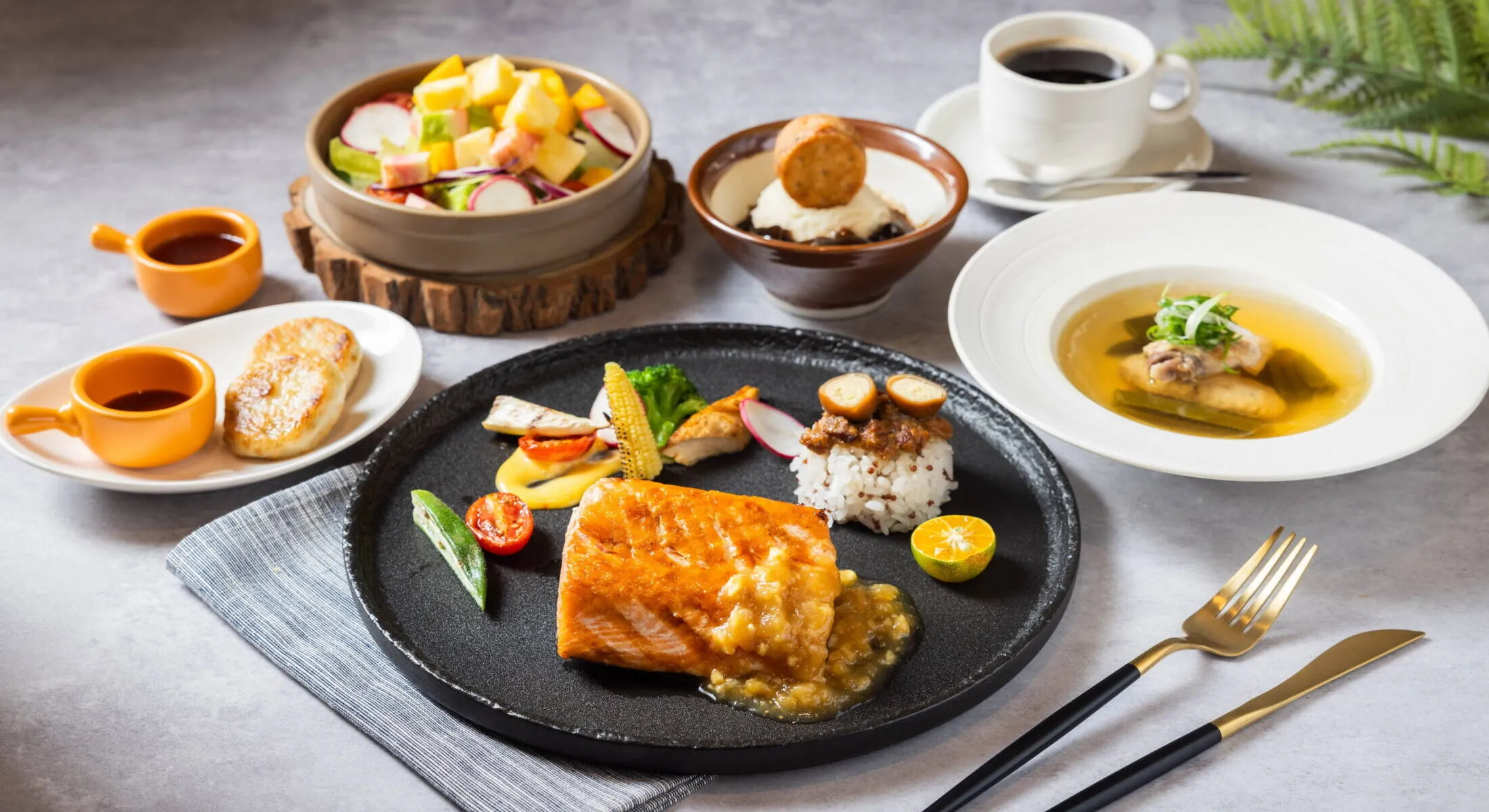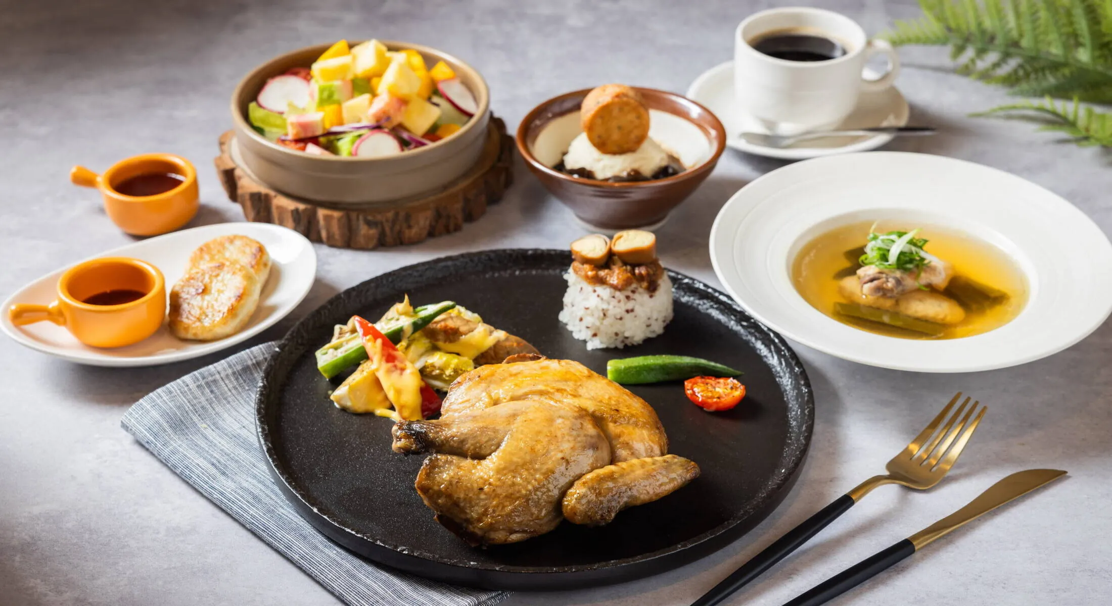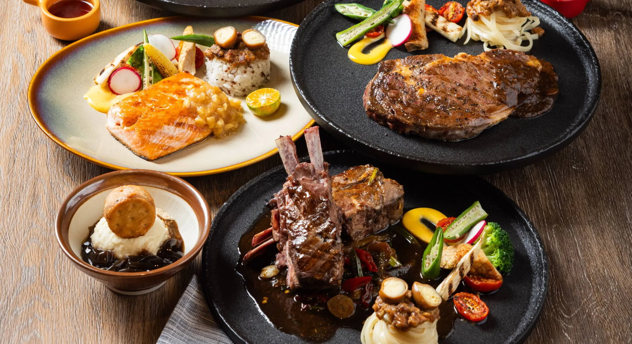 シェフが腕をふるい西洋料理と中華料理と多国籍料理を融合させた創作グルメをお楽しみください。エレガントでゴージャスな鏡とウッディーな内装。クラッシックな庭でのくつろぎの一時を家族やお友だちとの会食にぜひご利用ください。